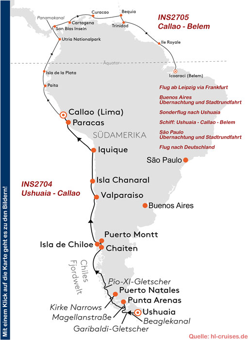 Urlaub - Frühjahr 2027 - Expeditionskreuzfahrt Südamerika (3. März bis 13. April 2027)